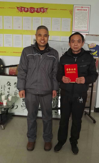 图二:车间主任吕永冬与优秀员工翁新宝的合影。